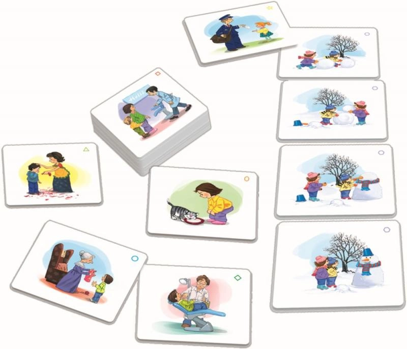Продължението на успешната серия „Мъдрата сова препоръчва“ предлага комплект с картинни плочки, от които децата съставят истории и след това ги разказват. Играта помага за разбиране на времевата последователност, подкрепя комуникационните умения и е идеална за деца в предучилищна и първи клас.