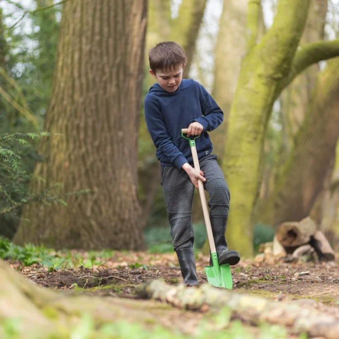 Гладката, здрава дръжка от естествено дърво ляга удобно в ръката и помага на децата да копаят уверено и с по-малка умора.