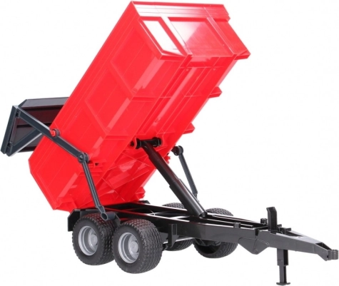 Червеният самосвал Bruder е перфектното допълнение за всеки малък фермер. Този популярен ремарке е оборудвано с автоматичен заден капак, който се отваря сам при разтоварване, което носи ненадминат реализъм в детските игри. Задният капак остава затворен, ако управлението не е активирано, като по този начин се гарантират безопасност и функционалност.