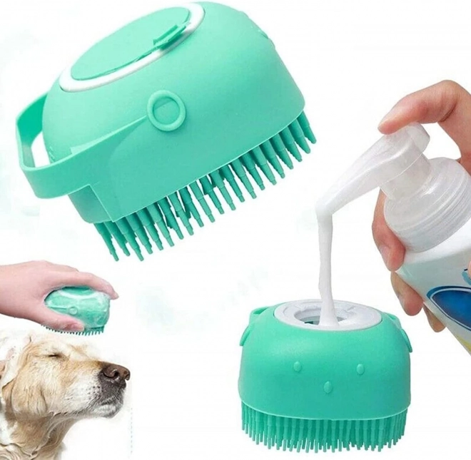 Улеснете къпането на домашните любимци със силиконова четка с резервоар за шампоан. Достатъчно е да отвиете капачката, налеете шампоан и при миене леко да натиснете четката за прецизно дозиране. Меките накрайници са щадящи към кожата и не изскубват козината, като същевременно осигуряват релаксиращ масаж.