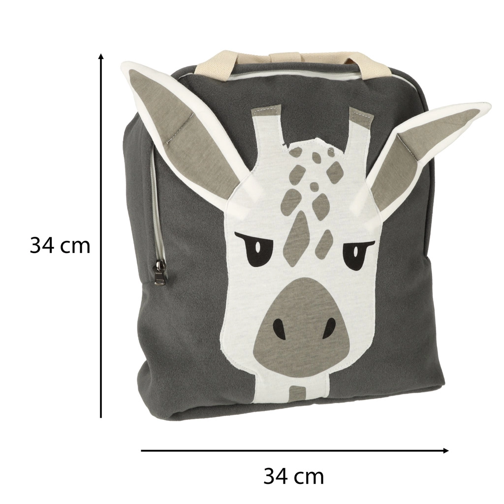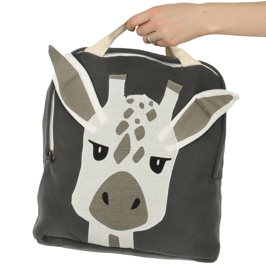 Тази стилна раничка с жирафче има модерен дизайн, който привлича вниманието на деца и родители. Благодарение на леката конструкция и меката материя се носи удобно през целия ден, а децата лесно подреждат всичките си дребни вещи.