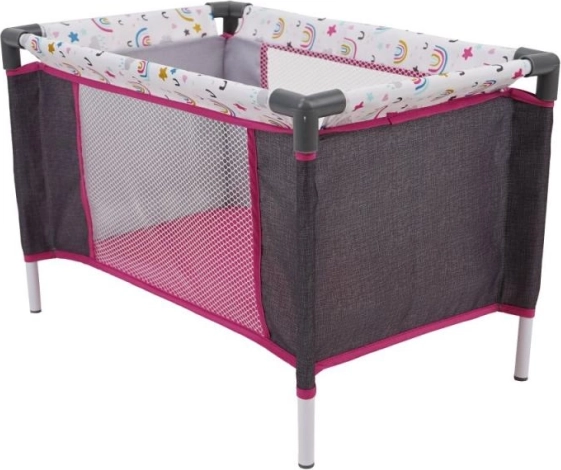Това сладко пътно легълце за кукли с дизайн Дъга е перфектното допълнение за ежедневна игра. Благодарение на компактните размери и ниското тегло децата лесно го пренасят, независимо дали тръгват на почивка, при баба или си играят у дома.