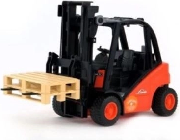 Реалистичен модел на мотокар Bruder Linde H30D в мащаб 1:16, който ще зарадва малките строители и колекционери. Предлага напълно функционално повдигащо устройство, накланящи се рамена, управление на задните колела и включва 2 палета. Изработен от издръжлива пластмаса в Германия.