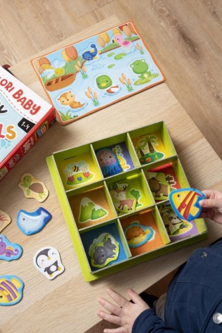 Монтеcори кутия Животни представя на децата пъстрия свят на природата чрез просто сортиране и съпоставяне. Децата се учат да различават животните и тяхната естествена среда, развиват логическо мислене и координация око–ръка. Благодарение на цветния и интуитивен дизайн играта бързо се усвоява и от най-малките.