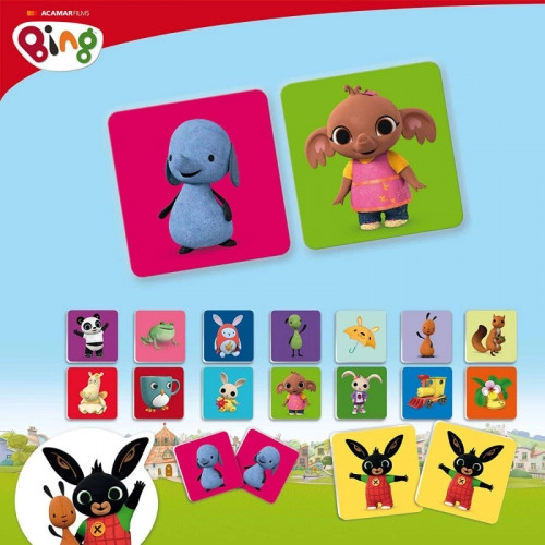 Мемо играта Bing от марката LISCIANI е идеална социална игра за деца в предучилищна и ранна училищна възраст. Благодарение на илюстрациите на любимите герои от приказката Bing децата упражняват памет, визуално възприятие и концентрация – и всичко това по забавен начин.