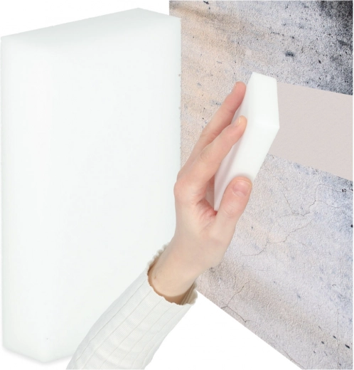 Магическата почистваща гъба е универсален инструмент за дома и автомобила. Без химикали успява да отстрани упорити петна от различни повърхности като фуги, стени, тапицерия или табла на автомобили. Тя е щадяща към повърхностите и не причинява надраскване.