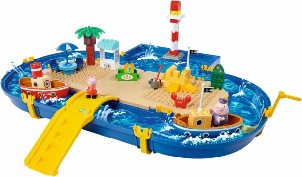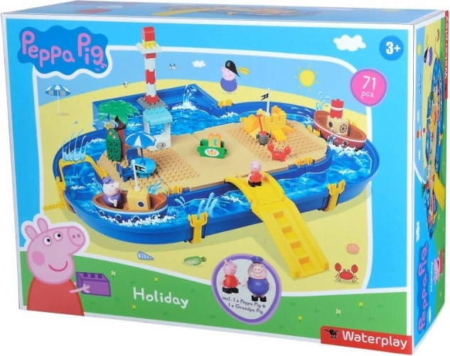 Прекрасният свят на Peppa Pig предлага безброй възможности за креативна игра с водна тематика. Този голям воден свят съдържа 47 различни игрови елемента, включително лодки и любими герои от анимационния сериал Peppa Pig. В комплекта са включени: