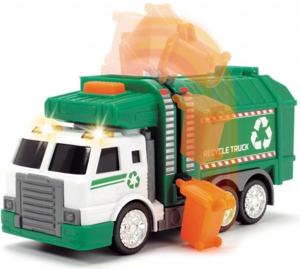 С натискане на бутон светлините се включват и се чуват автентични звуци на сметосъбиращ камион – чудесен стимул за сетивно възприятие и забавление.