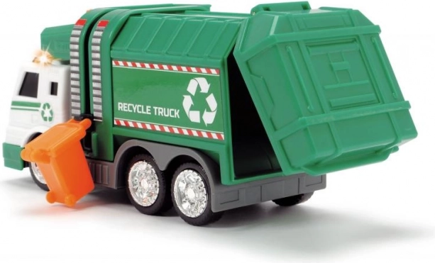 Открийте реалистично забавление с компактния сметосъбиращ камион с дължина 15 см. Децата ще обикнат светлинните и звуковите ефекти, които придават автентичност на играта, и подвижните елементи, позволяващи товарене и разтоварване на отпадъци. В комплекта е включена и кофа, за да не липсва нищо за пълноценна сметосъбираща акция.