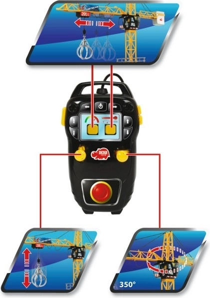 С помощта на включения контролер лесно повдигате или спускате прикрепения товар и управлявате движенията на крана като в реалността.