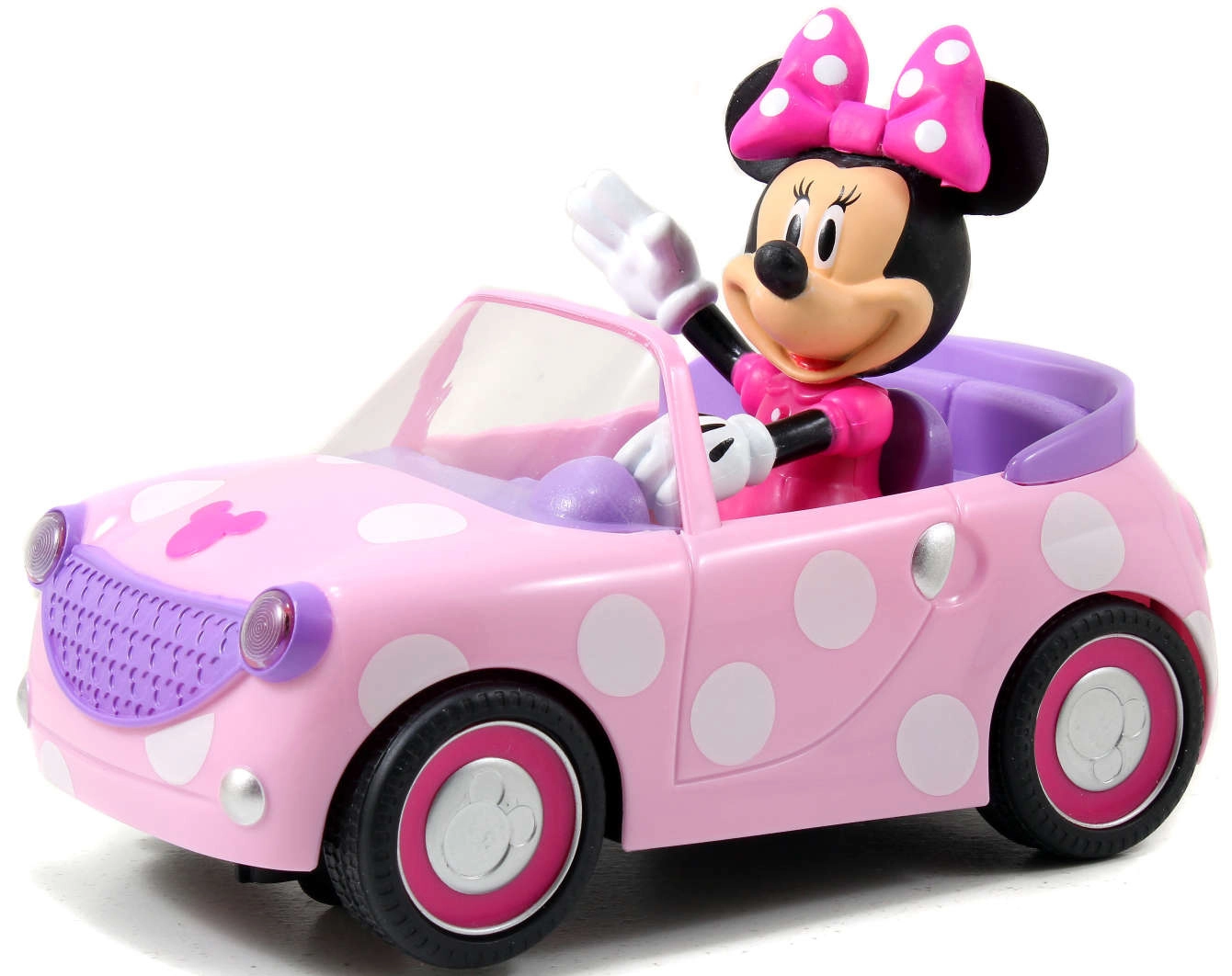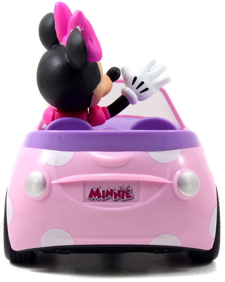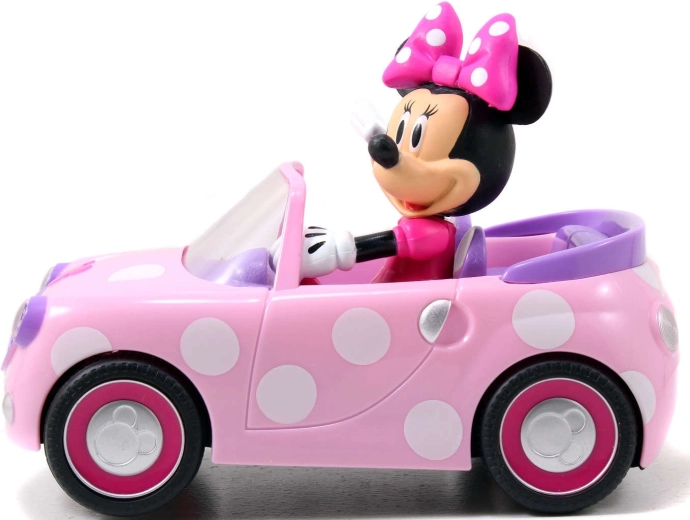 Розовият кабриолет на точки с неподвижно интегрираната фигурка на MINNIE MOUSE насърчава въображението и тематичната игра.