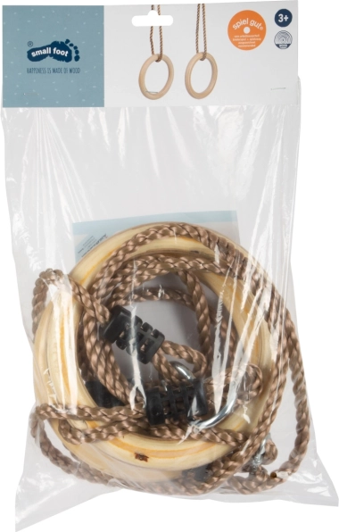 Дървените гимнастически халки small foot са отлични за тренировки на деца, които искат да подобрят своята физическа форма. Проектирани са така, че да са подходящи и за по-малки деца благодарение на диаметъра на халките и лесната регулировка на дължината на въжетата.