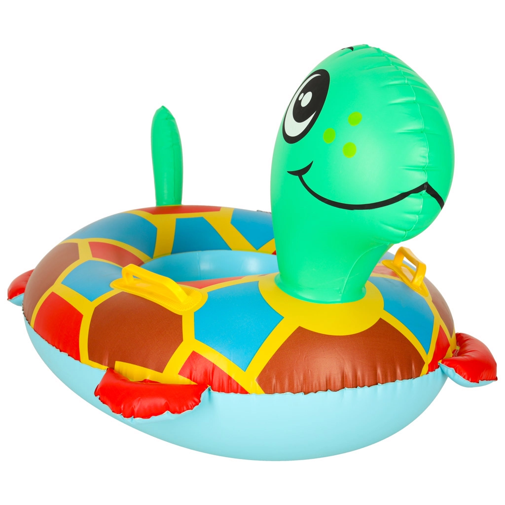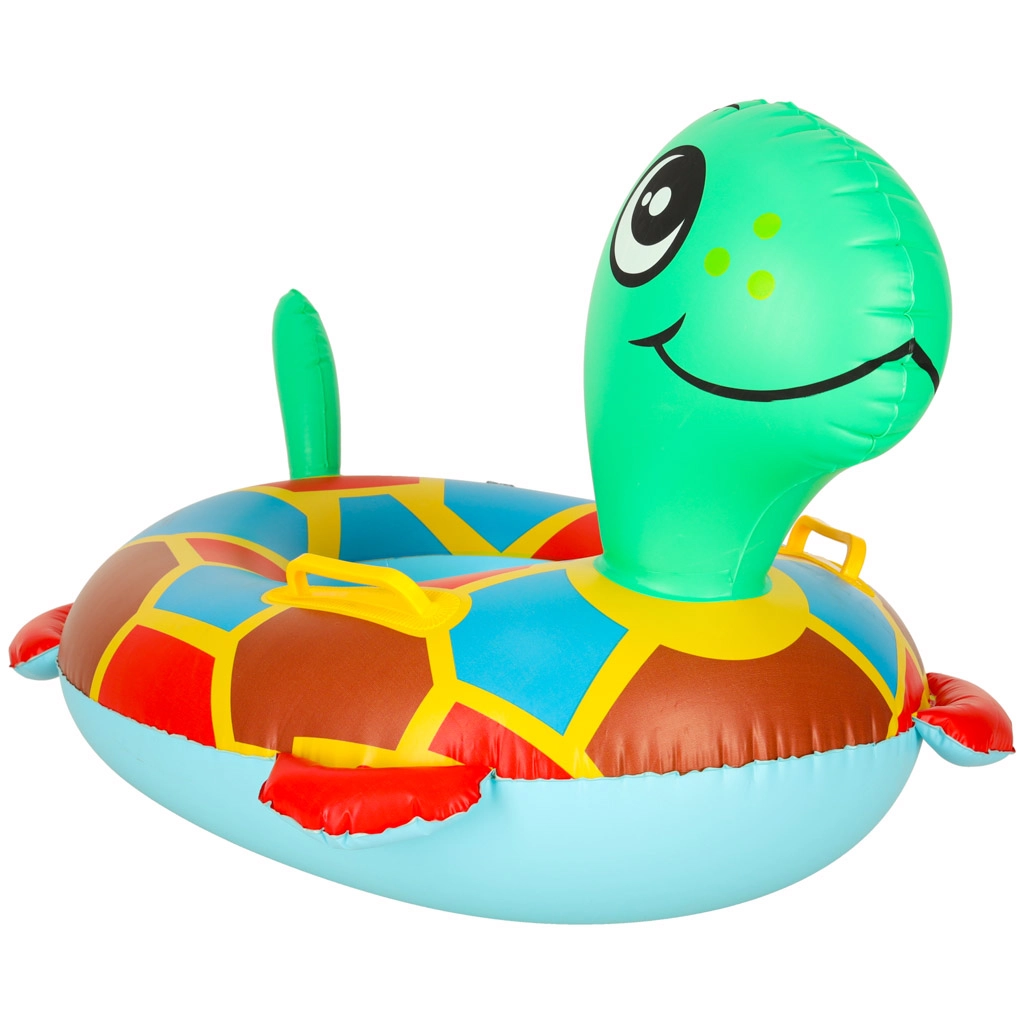 Насладете се на лятото с очарователното надуваемо столче във формата на костенурка за най-малките. Осигурява безопасно сядане с отвори за крачетата, удобни дръжки и ярки цветове, които децата обожават. Идеално за първо запознаване с водата и забавления в басейна.