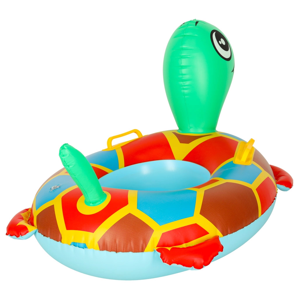 Надуваемото столче-костенурка е чудесен помощник за първите водни радости. Благодарение на двата отвора за крака детето седи стабилно, докато цветният дизайн и усмихнатата глава на костенурката приканват към игра. Здравото PVC осигурява дълъг живот и лесна поддръжка.
