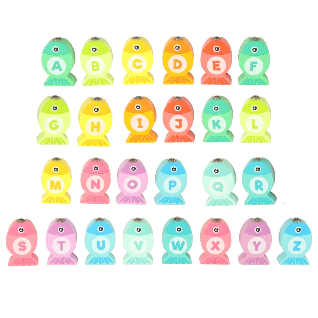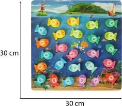 Присъединете се към вълшебния подводен свят и изживейте безкрайно забавление с дървената игра за ловене на рибки. Тази образователна игра помага на децата да научат буквите, цветовете и броенето. Рибките, обозначени с отделни букви, трябва да бъдат поставени в правилните отвори и могат да се улавят с помощта на магнитна въдица. Целият процес помага за развитие на концентрация и търпение.