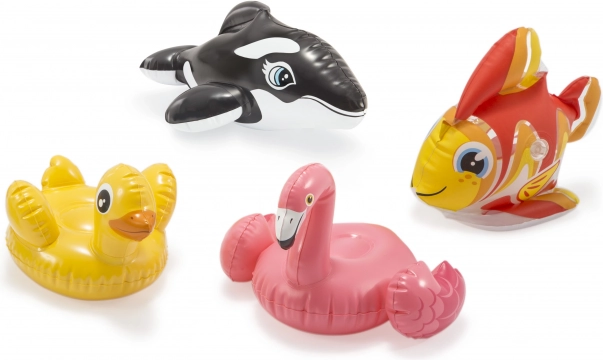 Надуваемите животинки INTEX Wet Set превръщат всеки басейн в цветна водна площадка. Децата ще обикнат веселия дизайн и удобното централно място за седене или придържане, докато родителите ще оценят качествената изработка и издръжливия винил, подходящ за многократна употреба.