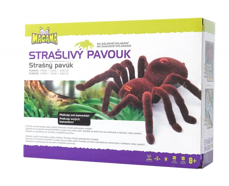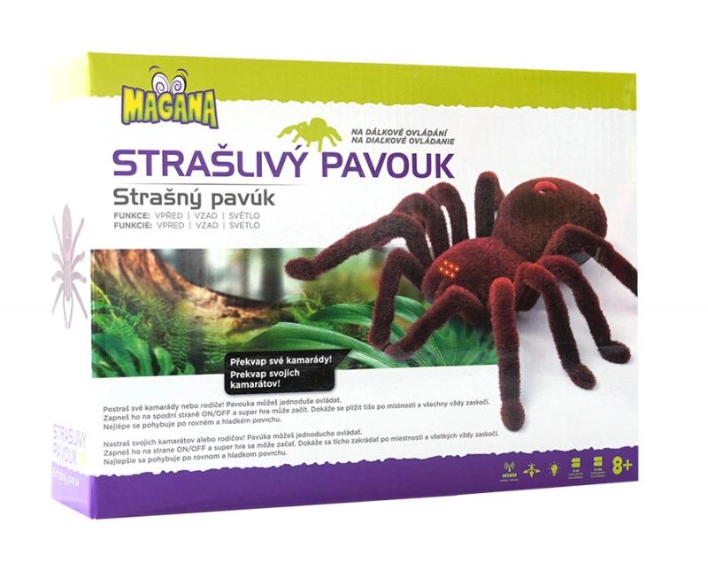 Паякът се промъква реалистично, а очите и коремчето му светят, което го прави още по-страховит и забавен на тъмно.