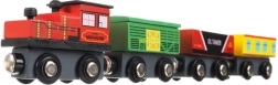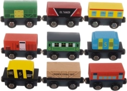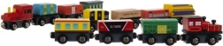 Комплектът включва 3 локомотива и 9 вагончета в различни цветове, като предлага разнообразно забавление.