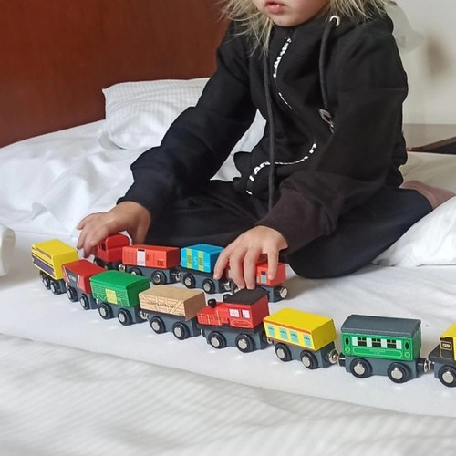 В комплектa са включени 3 локомотива и 9 вагончета в различни цветове, което осигурява разнообразие и забавление за дълго време. Благодарение на конструкцията си релсите са стабилни и устойчиви, идеални за ежедневна игра.