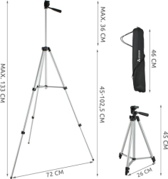 Стативът е идеален за фотография и видеография с фотоапарат, телефон или дигитална камера. Разполага с универсална резба 1/4" и съвместима стойка за различни устройства. Този практичен и лек помощник е лесно преносим, което го прави идеален спътник при пътуване.