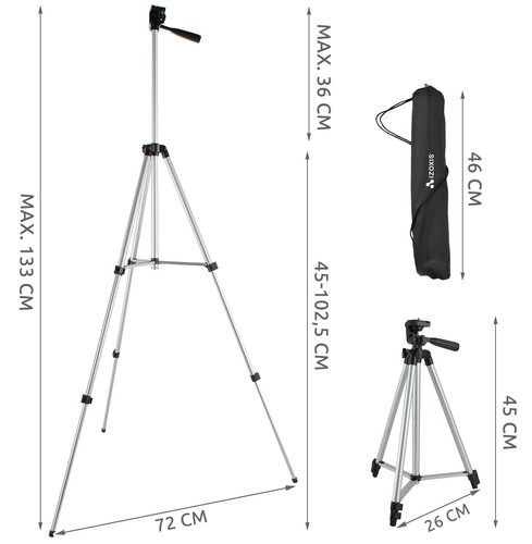 Главата на статива се регулира по три оси, което позволява прецизно настройване на ъгъла. Стабилната метална конструкция с пластмасови компоненти осигурява оптимална производителност и дълъг живот.