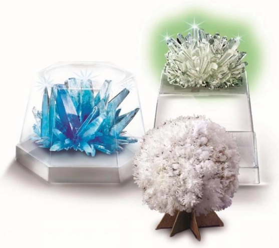 Превърнете бюрото си в малка научна лаборатория. Този образователен комплект ви позволява да наблюдавате образуването на кристали от разтвор, да отгледате аквамаринови кристали, лунни кристали, светещи в тъмното, както и ефектно кристално дърво. Перфектен избор за начинаещи геолози и любопитни тийнейджъри.