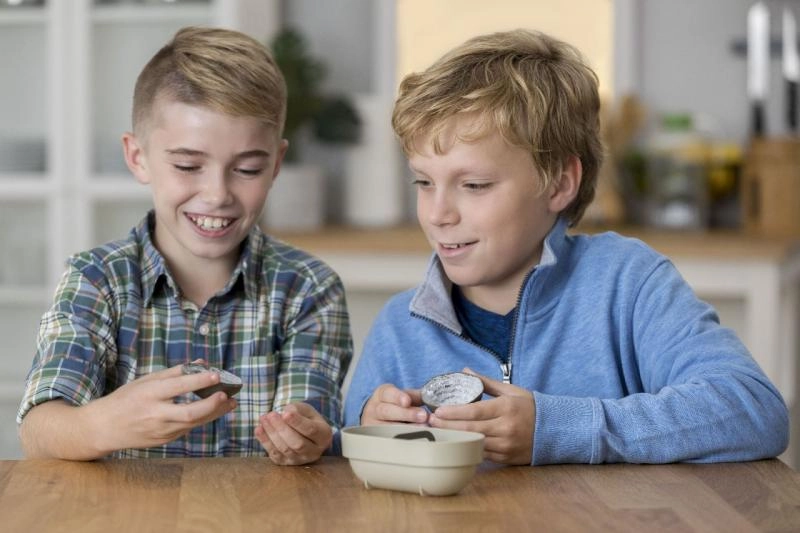 Този експериментален комплект ви позволява безопасно и нагледно да отгледате собствен кристален геод. В природата кристалите се образуват хиляди години – с комплекта MAC TOYS техният растеж ще видите в рамките на дни. Процесът е едновременно прост и завладяващ: разтваряте сместа, изливате във формата, оставяте да кристализира и наблюдавате как се ражда блестяща структура.