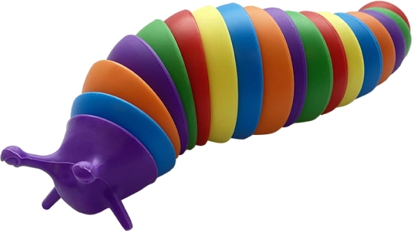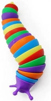 Антистресовата дъгова охлювка е подвижна шарнирна играчка, която позволява на децата свободно да я оформят и движат по желание. Изработена е от приятна на допир пластмаса, която лесно се почиства. Тази охлювка не само помага в борбата със стреса и умората при децата, но може да бъде полезен помощник и за възрастни.