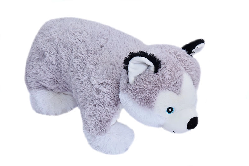 Търсите практичен и едновременно сладък аксесоар за детската стая? Тази плюшена възглавница хъски съчетава комфорт и закачливост. Благодарение на умното решение лесно я сгъвате до плюшена играчка, с която децата с радост ще си играят, а после отново я разгъвате до удобна възглавница за почивка.