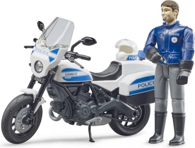 Полицейският мотор DUCATI Scrambler от Bruder е прецизно изработен модел за малки и големи фенове на спасителните служби. Мотоциклетът има завиващо кормило за лесно маневриране и сгъваема стойка за стабилно оставяне. Фигурката на полицая има подвижни крайници, така че може да се постави в позиция за каране или да се изложи до машината.