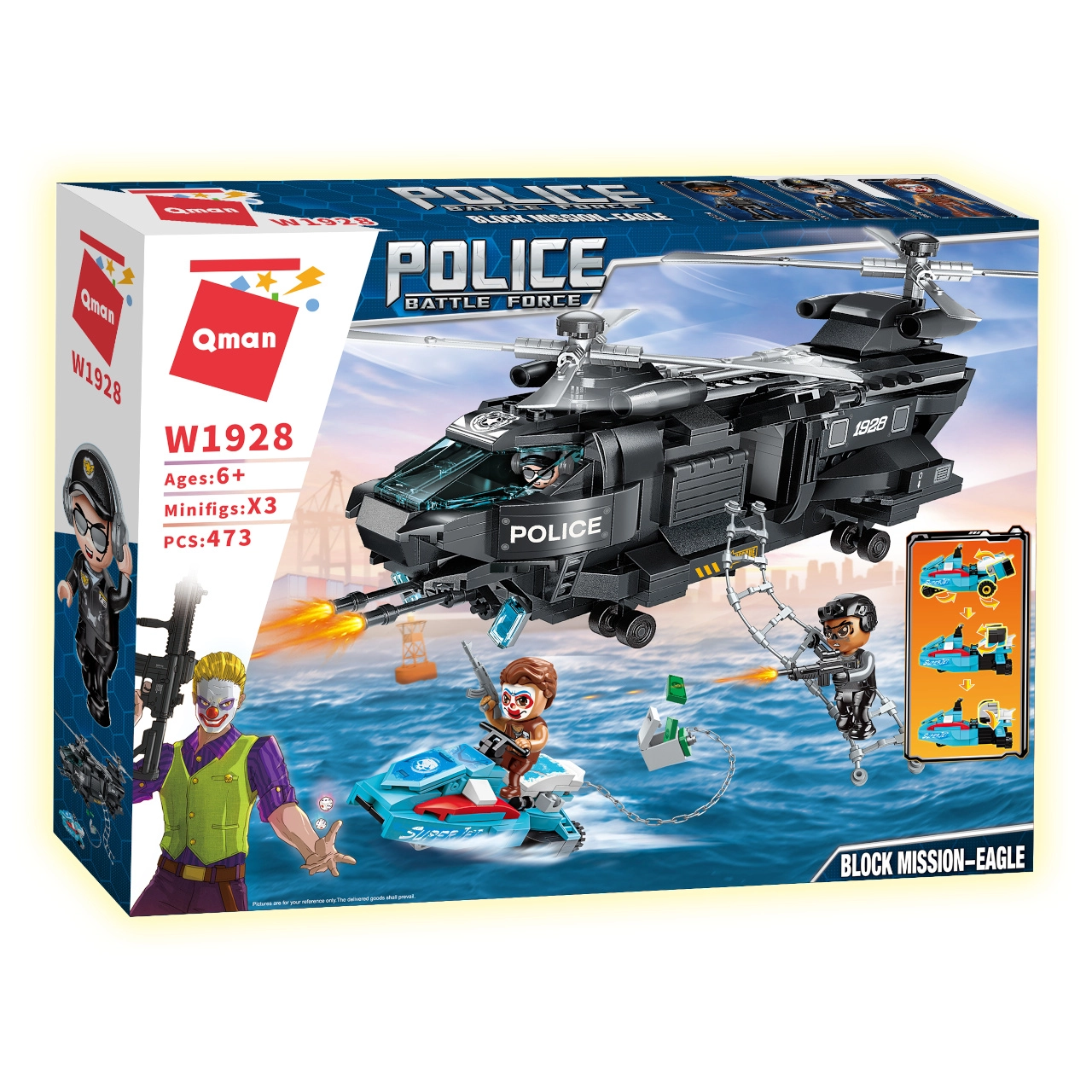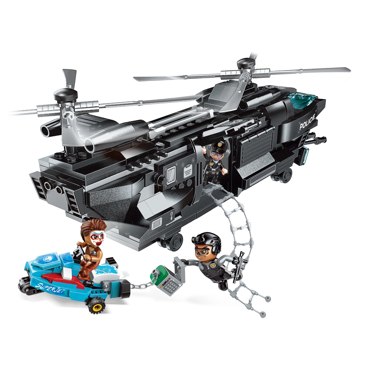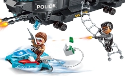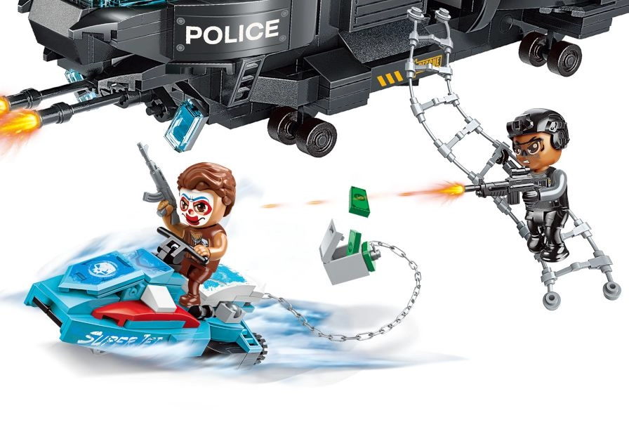 Влезте в света на екшън мисиите с полицейско звено, което не дава шанс на престъпниците. Хеликоптерът с функциониращи ротори и спускаща се въжена стълба позволява светкавичен десант право в центъра на действието, докато преследваният бяга на преобразуемо превозно средство – от мотор към воден скутер за миг.