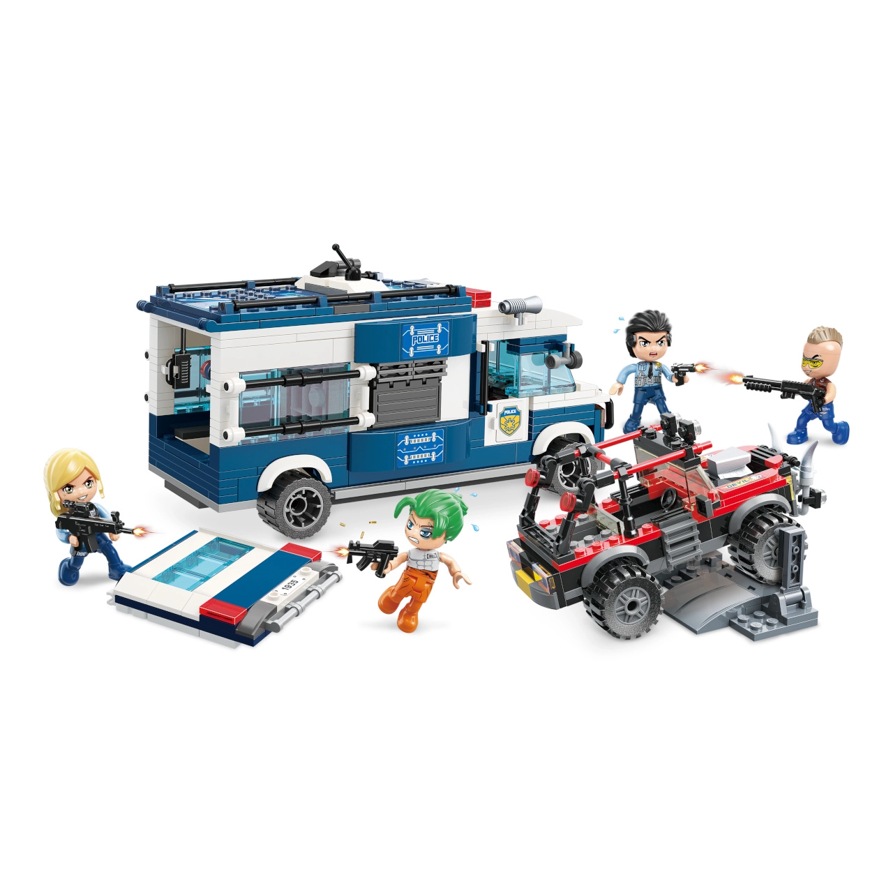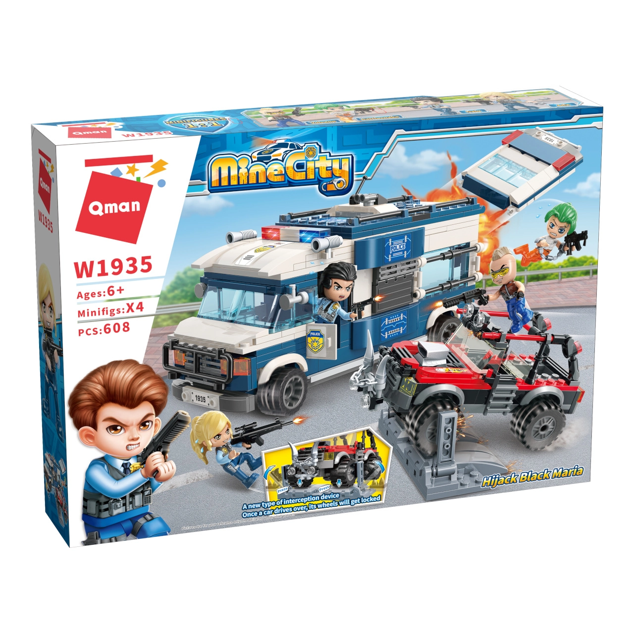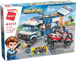 Потопете се в света на Mine City с този невероятен конструктор, който комбинира качествени пластмасови елементи и реалистични фигурки. Комплектът съдържа общо 608 елемента и 4 фигурки, които ви позволяват да създавате разнообразни игрови сценарии. Полицейският автомобил и офроуд колата дават възможност за динамични истории за залавяне на престъпници и вълнуващи преследвания.