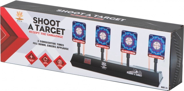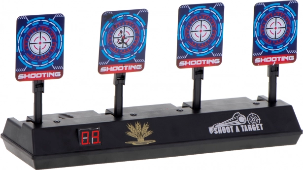 Електронната мишена е чудесен избор за тренировка на точността и състезателно забавление у дома. Четирите самостоятелни цели позволяват различни режими на игра – от скоростни дуели до пестелива стрелба с възможно най-малко изстрели. След всяко уцелване целта пада, при уцелване на всичките четири получавате 1 точка и мишените автоматично се връщат в изходна позиция.