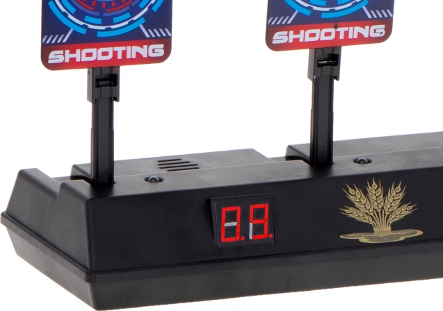 LED дисплеят ясно отчита точките, а след уцелване на всичките четири цели мишените сами се вдигат – играта продължава без ръчно настройване.