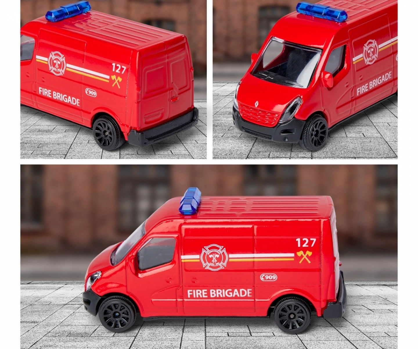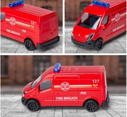 Комплектът включва автентично метално превозно средство с лицензирани детайли на марката Renault Master, предназначено за игрови сценарии на сушата и във въздуха.