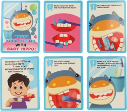 Пъстри карти с стъпките за почистване на зъбите мотивират децата към редовна и правилна грижа за усмивката.