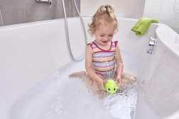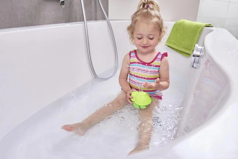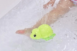 Тази сладка костенурка за баня е чудесен спътник за малките любители на водата. Плува по повърхността и с лек поток пръска вода, стимулирайки сетивното възприятие и насърчавайки децата към интерактивна игра по време на къпане.