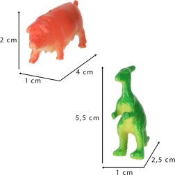 Прасе: 4 × 1 × 2 см; Динозавър: 5,5 × 1 × 2,5 см