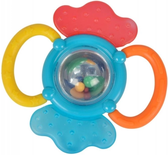 Комбинация от дрънкалка и гризалка в едно, идеална за деца от 3-месечна възраст. Осигурява забавление и подпомага сетивното развитие на детето.