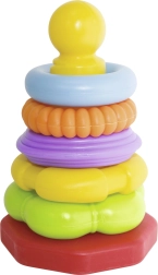 Пирамида с цветни пръстени е идеалният помощник за развитие на моториката и умението за комбиниране при децата. Съдържа пет разноцветни пръстена с различни форми.
