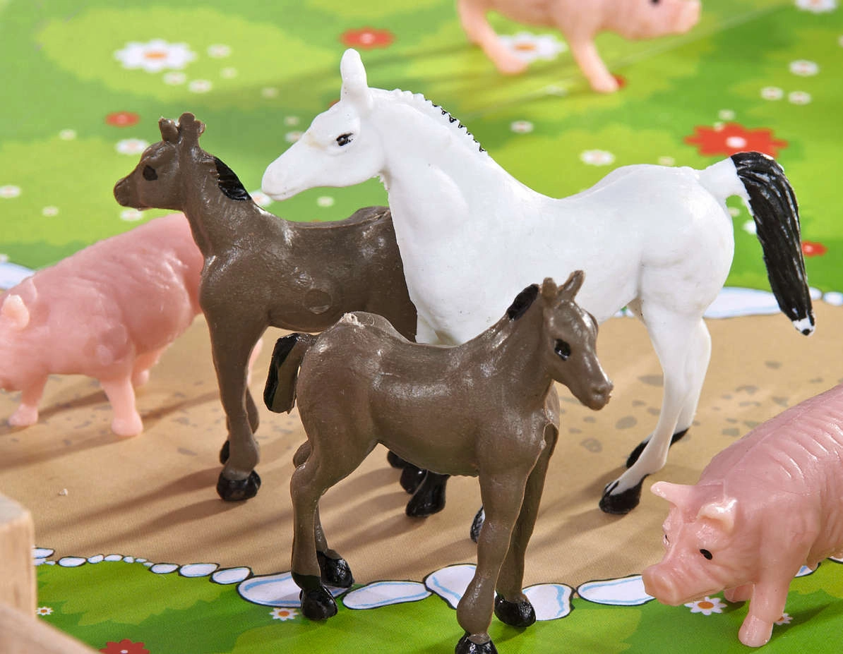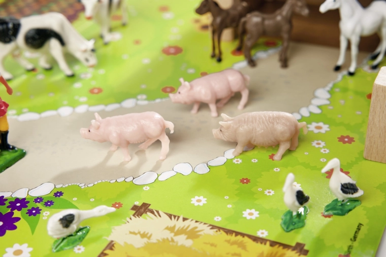 Децата по време на игра тренират фината моторика, логическото мислене и разпознаването на животни и цветове. Играта на ферма естествено води до учене за грижата за животните, храненето и работата в градината. Комплектът е чудесен като самостоятелна играчка и като разширение към други конструктори и фигурки.