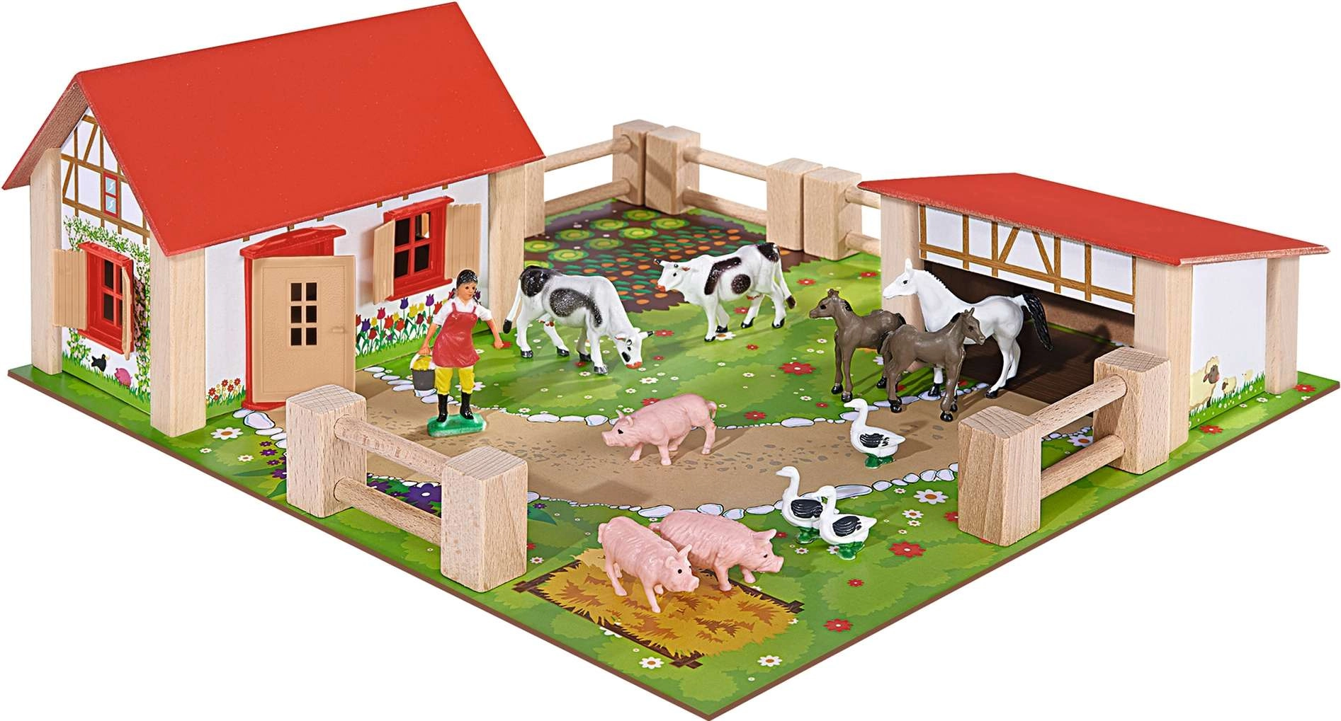 Дървена ферма със стая и фигури на животни, 23 части EICHHORN