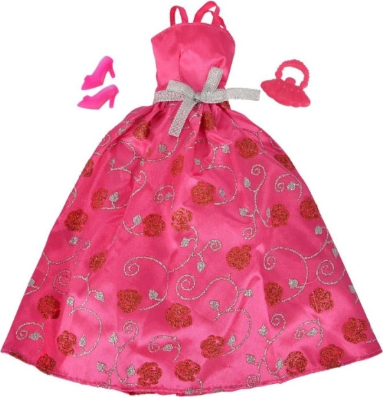 Към роклята са включени подходящи високи токчета и чанта, които допълват елегантния комплект за кукли.