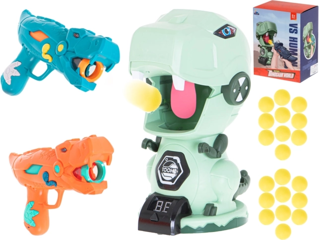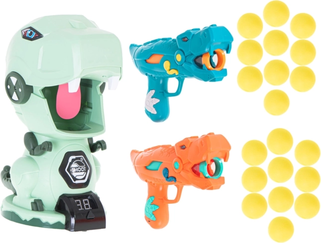 Два стилни пистолета във форма на динозаври позволяват безопасно и ефективно изстрелване на меки пянови топчета. Идеални за игра по двойки и състезания.