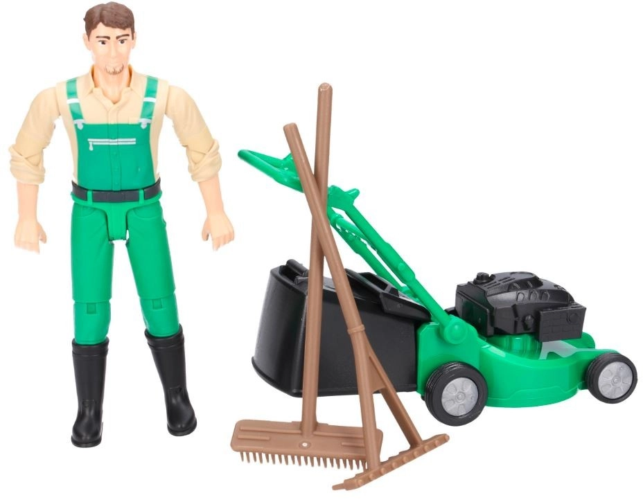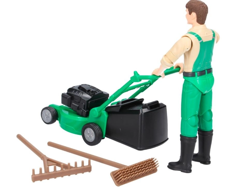 - Фигурка градинар, косачка със свалящ се кош, гребло, метла