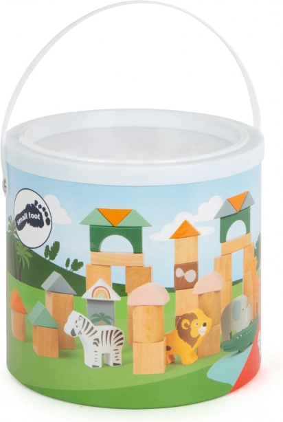 Комплектът дървени строителни кубчета Сафари е перфектна играчка за малки изследователи. Съдържа 50 броя кубчета в различни форми и цветове, включително пастелни нюанси и естествено дърво. В опаковката има и 5 фигурки на сафари животни, включително зебра, лъв, жираф, слон и крокодил. Тези елементи предлагат безброй възможности за креативно строене. Няма граници за въображението – построете къщички за животните и създавайте свои собствени истории.