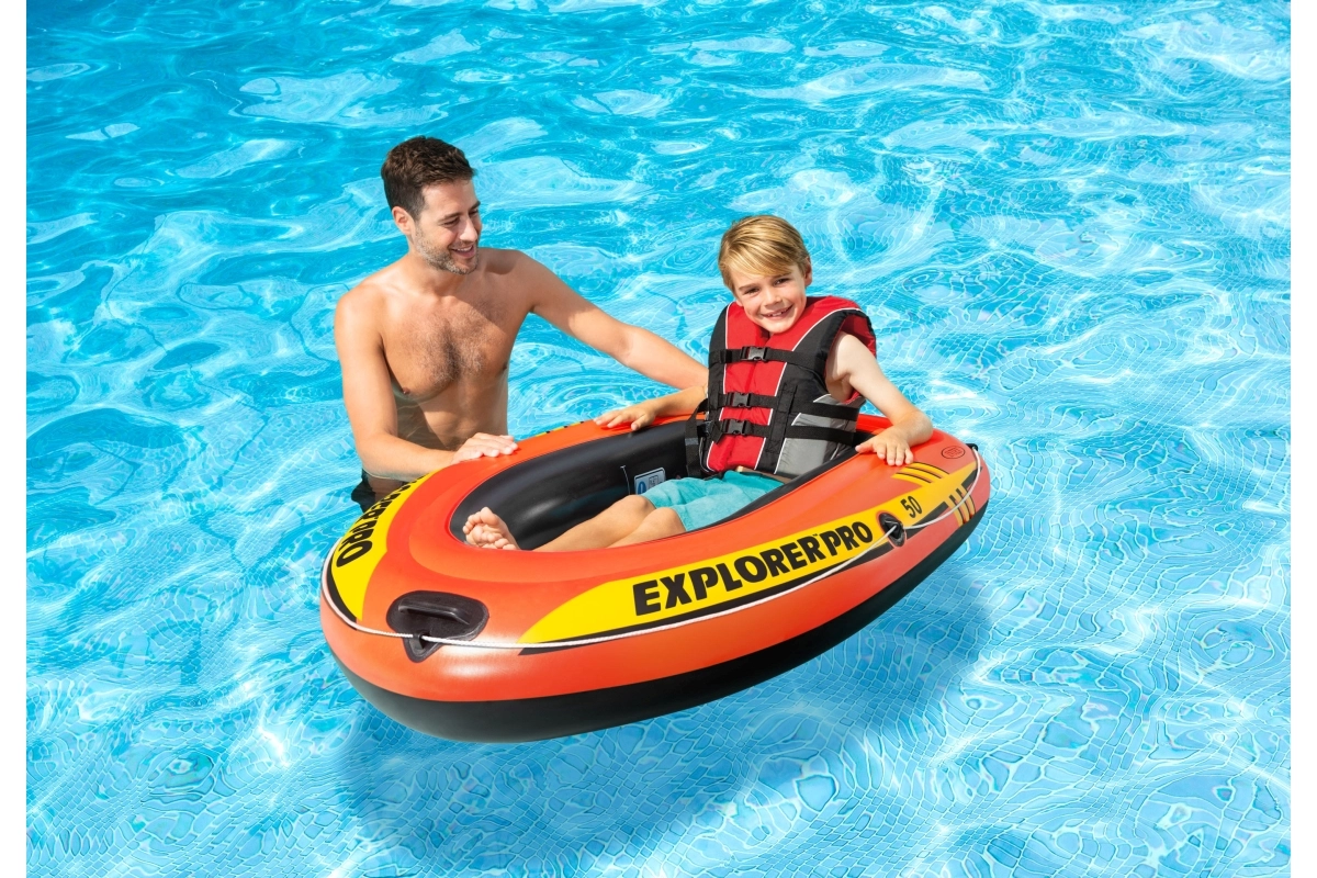 Подарете на децата забавление край водата с надуваемата лодка EXPLORER PRO 50. Благодарение на трите самостоятелни камери и здравия материал лодката е стабилна и безопасна, като същевременно запазва ниско тегло и лесна управляемост. Въжето за хващане, прекарано по целия периметър, улеснява пренасянето и задържането във водата.