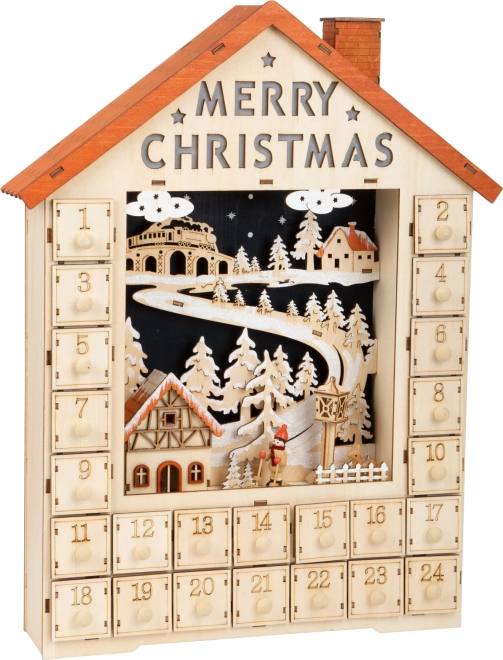 Адвент календар Весела Коледа носи коледната магия директно във вашия дом. Този красив дървен календар е не само естетическа украса, но и практичен аксесоар с нежно LED осветление.