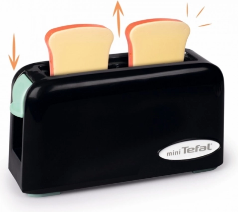 Мини Tefal детски тостер е идеална играчка за деца, които искат да имитират работа в кухнята. Достатъчно е да поставите пластмасовите филийки в тостера и да натиснете превключвателя за механично изваждане.