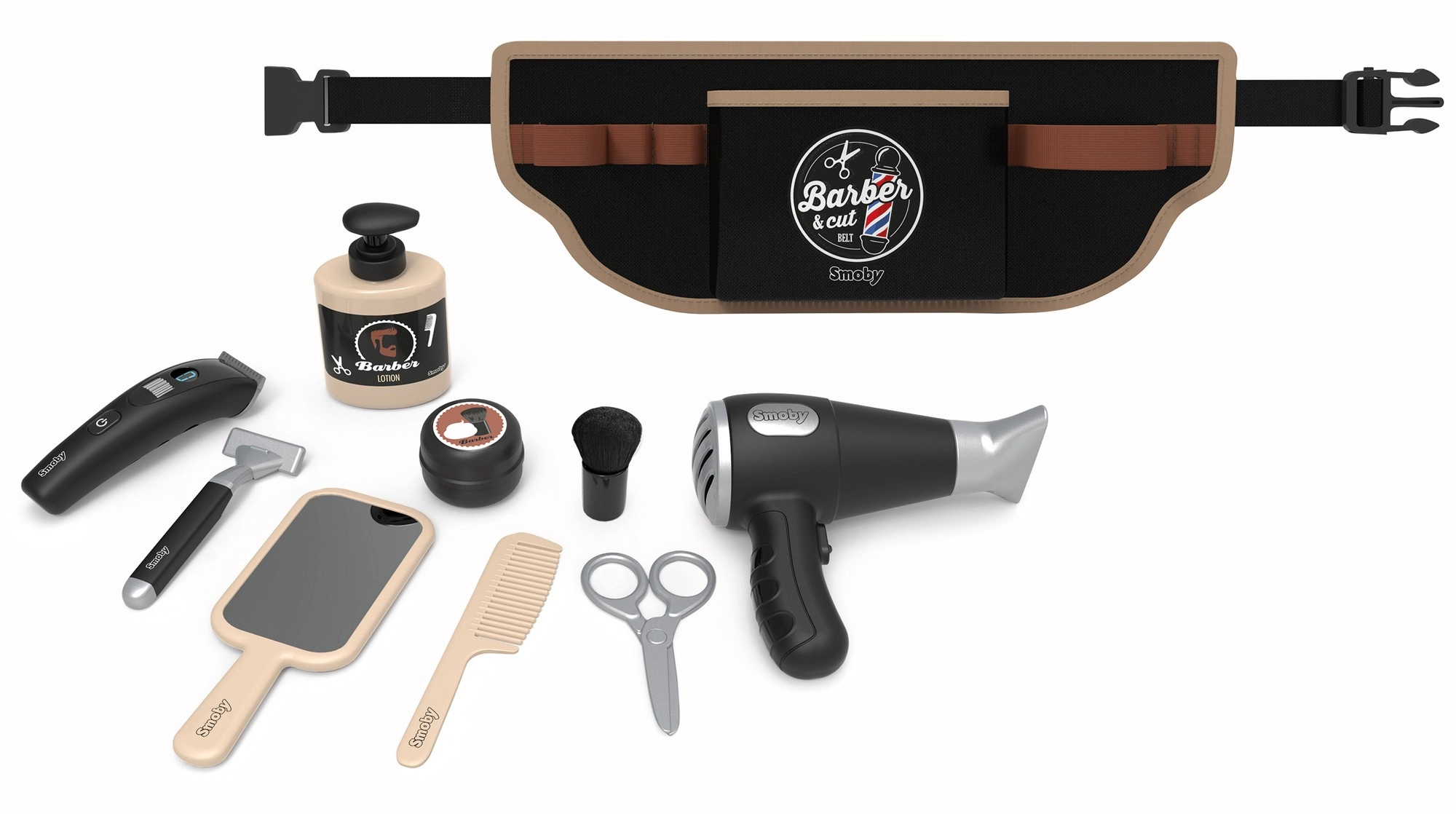 Фризьорският колан за деца Smoby myBeauty превръща всеки ден в забавно салонно приключение. Благодарение на регулируемия колан децата имат всички принадлежности безопасно съхранени и винаги под ръка – от сешоара през ножиците до гребена и самобръсначката. Интерактивният сешоар издава реалистични звуци, така че играта изглежда като истинска.